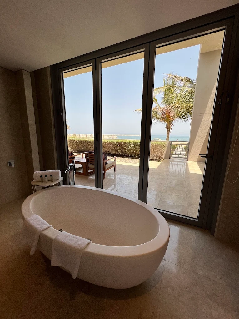 310 просторных номеров и люксов в современном дизайне с арабскими акцентами. Большинство оснащено балконами или террасами с видом на море, сады или гольф-поле. Люксы предлагают отдельные гостиные зоны, а эксклюзивные suites (включая Royal Suite) — собственные plunge-бассейны (единственные в Маскате) и прямой выход на пляж.