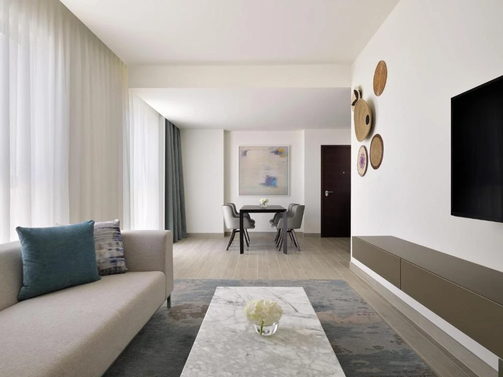 - Апартаменты (1, 2, 3 спальни): Идеально подходят для семей или длительного проживания, оснащены мини-кухнями или полноценными кухнями и гостиными зонами.